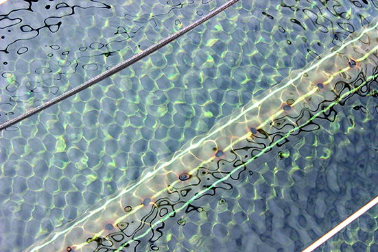 Il existe différents matériaux et structures permettant de mettre en œuvre une décantation lamellaire. La plus courante consiste à utiliser des plaques espacées de 50 à 100 mm, en aluminium ou en composite. Autre solution, il est possible d’utiliser des structures en nids d’abeilles, c’est-à-dire des structures hexagonales de 50 mm, qui ont un intérêt réel en termes de surface de décantation ramenée au volume des matériaux. « Au niveau hydraulique il est important et essentiel de bien répartir l’eau entre toutes les plaques ou les nids d’abeilles » insiste Jean-Yves Viau. « Il faut donc mettre en place des canaux de reprise des eaux décantées pour que l’eau passe par toute la surface lamellaire. Il faut respecter certains critères hydrauliques, notamment la vitesse de passage des particules dans l’installation, qui se mesure avec le nombre de Reynolds. Nous avons des critères associés : le volume de boues, qu’il faut savoir gérer, et il faut parfois imaginer des dispositifs d’extraction des boues pour accroître l’autonomie de l’ouvrage. Nous avons d’ailleurs déposé un brevet à ce sujet pour une technique permettant de mesurer directement le niveau de boues, ou de les aspirer dans l’ouvrage. Cette technologie, Aspibou®, a été brevetée il y a deux ans ».