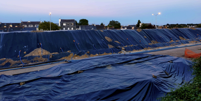 Les eaux de pluie et de ruissellement infiltrées déclenchent un processus naturel de dégradation et de séquestration des polluants lors de leur passage dans le géotextile. Les terres sont ainsi traitées in situ sans nécessiter de transport, stockage ou de transformation lourde.