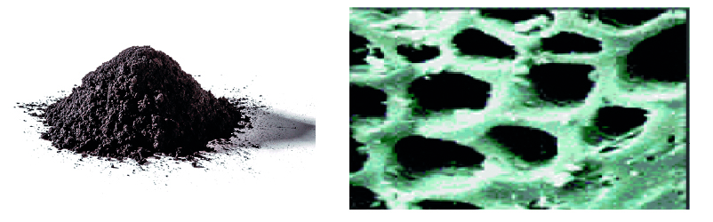 Les charbons actifs ont à la fois des groupes fonctionnels hydrophiles de surface, qui agissent comme des centres d’adsorption primaires (pour la vapeur d’eau par exemple), et des couches de graphène hydrophobes sur lesquelles les espèces non polaires sont principalement adsorbées [7].