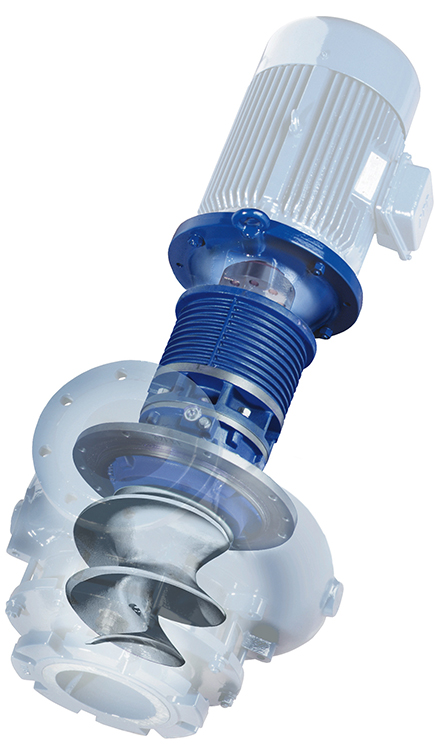 Sulzer a développé la roue Contrablock Plus, une roue semi-ouverte dotée d’une plaque de fond rainurée réglable de l’extérieur, qui permet de maintenir le rendement de la pompe. Fruit de plusieurs milliers d’heures de tests, elle est dotée d’une aube dont le bord d’attaque est autonettoyant : 80 % des filasses passent dans la roue, le reste par la plaque de fond rainurée. Cette roue permet à la pompe multicanal Contrablock Plus d’afficher un rendement hydraulique voisin de 86 %.