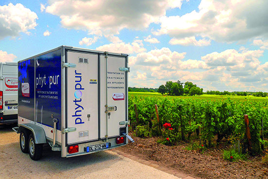 Présente tout au long de la chaîne de traitement des effluents phytosanitaires, la société Michael Paetzold propose une solution simple à mettre en œuvre pour concevoir une collecte et un stockage des effluents efficace : Phytopiste. Cette aire de lavage, capable de travailler avec l’ensemble des véhicules d’une exploitation (machine à vendanger, tracteur, enjambeur, voiture), est la première étape pour traiter un effluent phytosanitaire. Pour le traitement de ces effluents spécifiques, Michael Paetzold a développé le procédé Phytopur. Combinaison de trois technologies de traitement des eaux (coagulation, osmose, adsorption sur Charbon Actif), Phytopur permet d’assurer une épuration poussée. Proposée en prestation de service, cette solution a le mérite de rendre accessible la technologie de l’osmose à l’ensemble des viticulteurs, qui peuvent ainsi profiter d’une technologie de pointe. Les techniciens Environnement de Michael Paetzold interviennent ainsi en totale autonomie sur l’ensemble du territoire, assurant le traitement des effluents de plus de 400 propriétés à partir de la cuve de stockage.