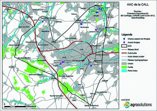 La Communauté d’Agglomération de Lens-Liévin (CALL) assure l’approvisionnement en eau potable pour 36 communes et 245.000 habitants. L’eau potable distribuée provient de la nappe de la craie (17 champs captants) et d’une ressource en eau superficielle. Six champs captants sont classés prioritaires. Une Opération de Reconquête de la QUalité de l’Eau (ORQUE) est en préparation sur ce territoire. Ce type d’opération vise à réduire les pollutions diffuses dans les aires d’alimentation des captages en eau potable pour reconquérir ou préserver la qualité de la ressource en eau.